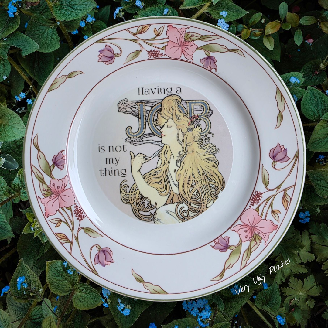 For everyone who’s allergic to the concept of a 9-to-5 — meet your spirit plate. This vintage beauty proudly says “Having a job is not my thing” so you don’t have to. Perfect for freelancers, dreamers, or anyone who’s ever “accidentally” quit their job after one bad meeting.