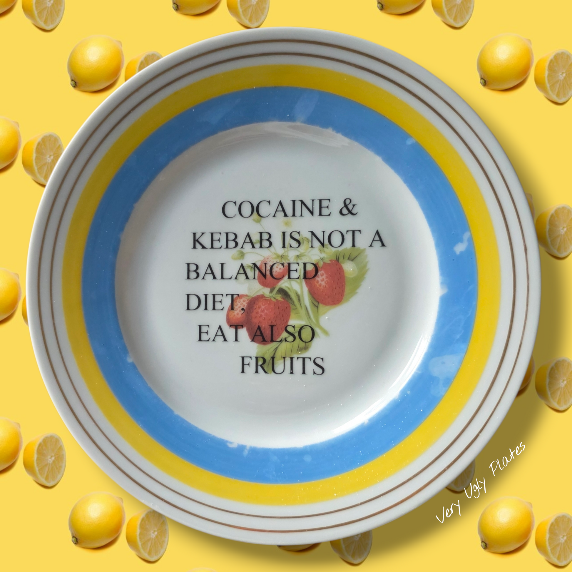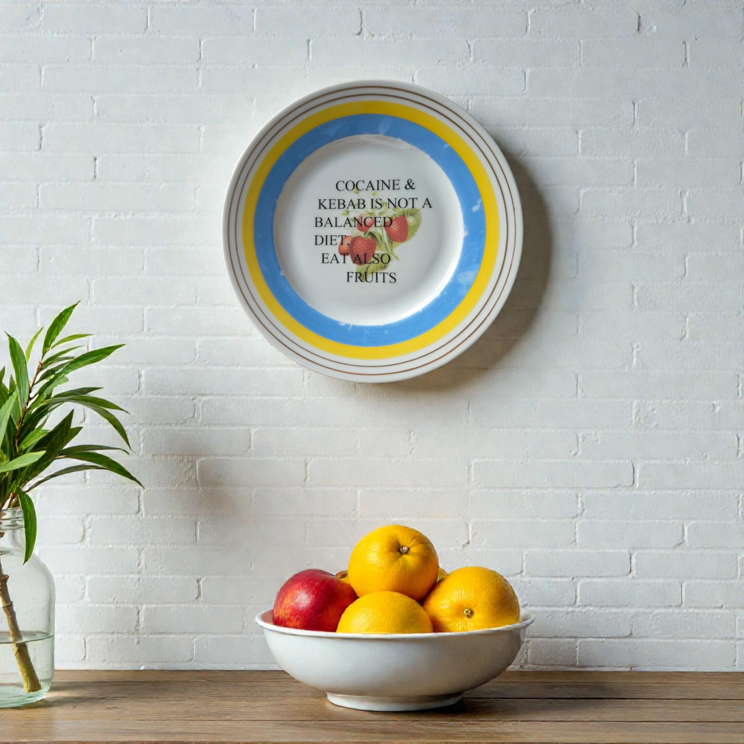 "Cocaine & Kebab is Not a Balanced Diet - Eat Also Fruits" Plate