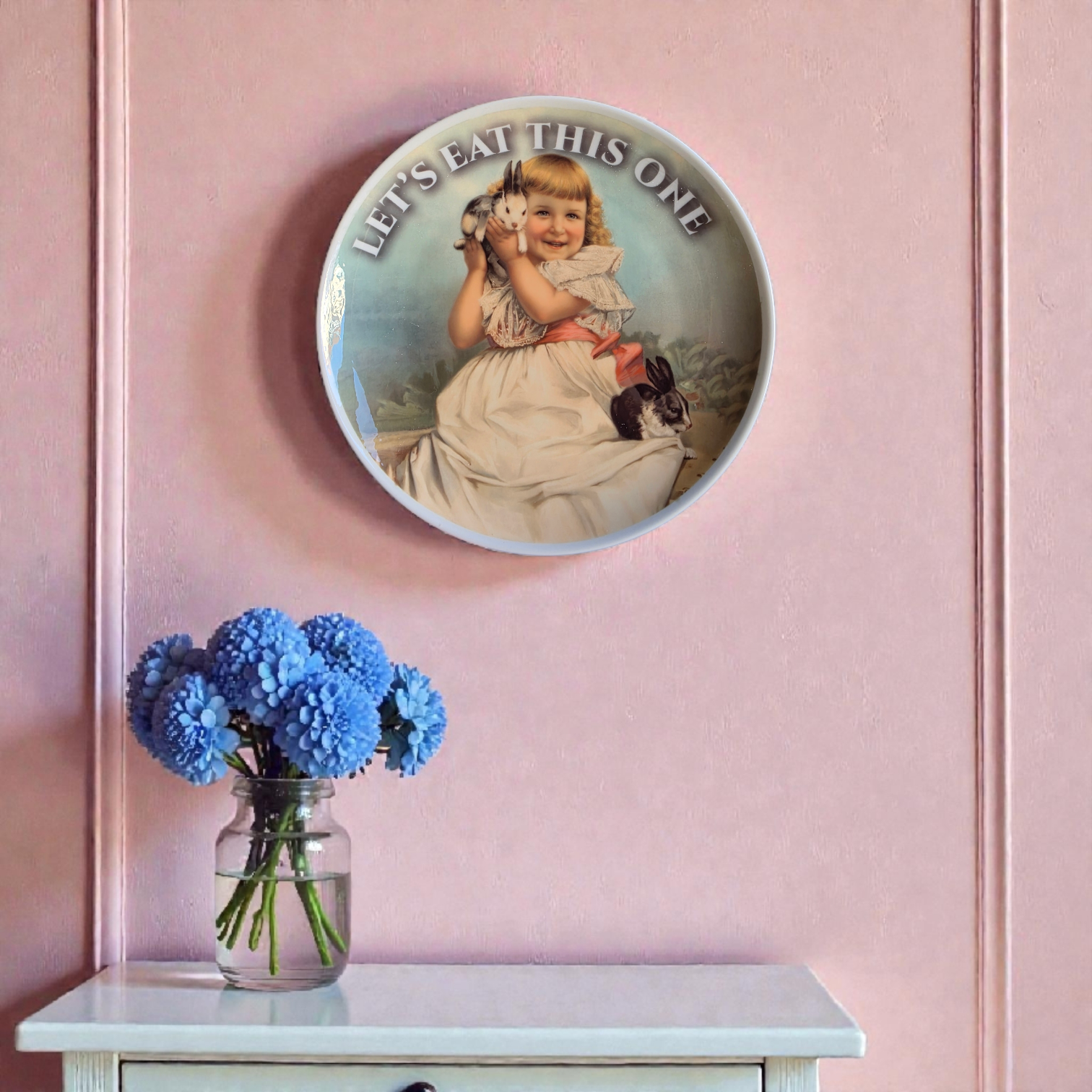 This 20 cm decorative plate looks like an innocent, old-school illustration… until the text hits: LET’S EAT THIS ONE.