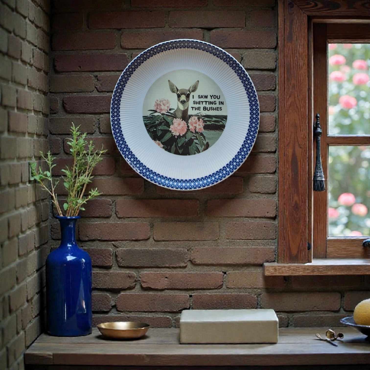 This 20 cm vintage plate features an innocent-looking deer paired with a brutally honest message that absolutely did not need to be said — but was.